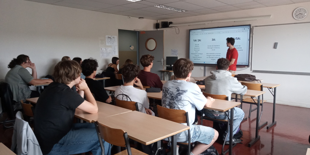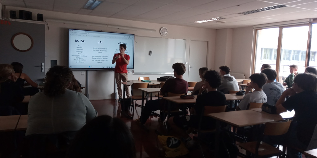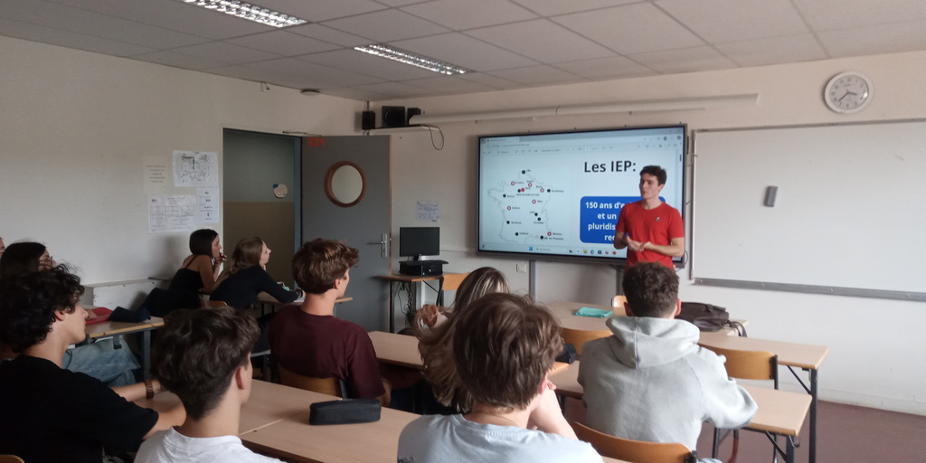 Après Paris, Strasbourg, Rennes, Lyon, Fontainebleau en 2023-24, Saint-Germain-en-Laye, Paris-Le Havre, Fontainebleau en 2024-25, c'est (à nouveau) l'IEP de Lyon (et son campus de Saint-Étienne) qui a été présenté aux PSP 2025-26 lors de la première séance ce mercredi 3 septembre 2025. Victor MARCINISZYN, bachelier SED spés HGGSP-SES 2023 et désormais étudiant en troisième année à Sciences Po Lyon, a exposé son parcours, de son admission dès 2023 à sa prochaine année polonaise 2025-26 à Jagiellonian University de Cracovie, et ses perspectives à l'horizon 2026-27, année synonyme de Master.