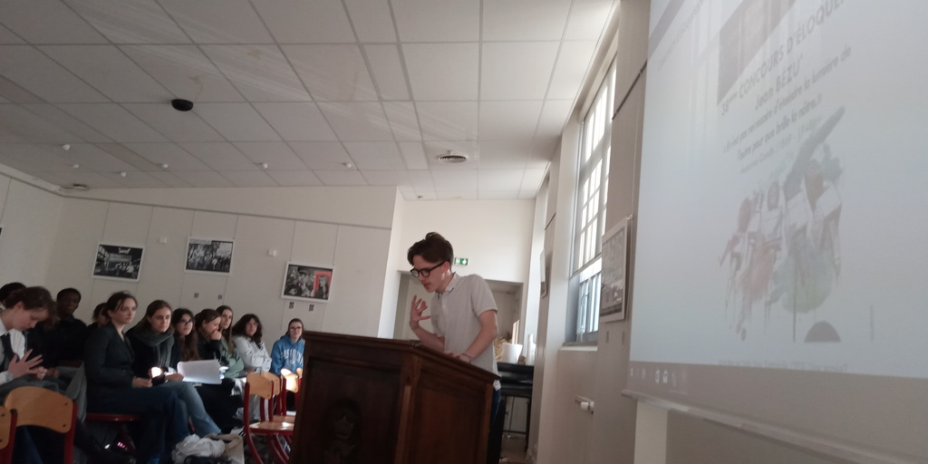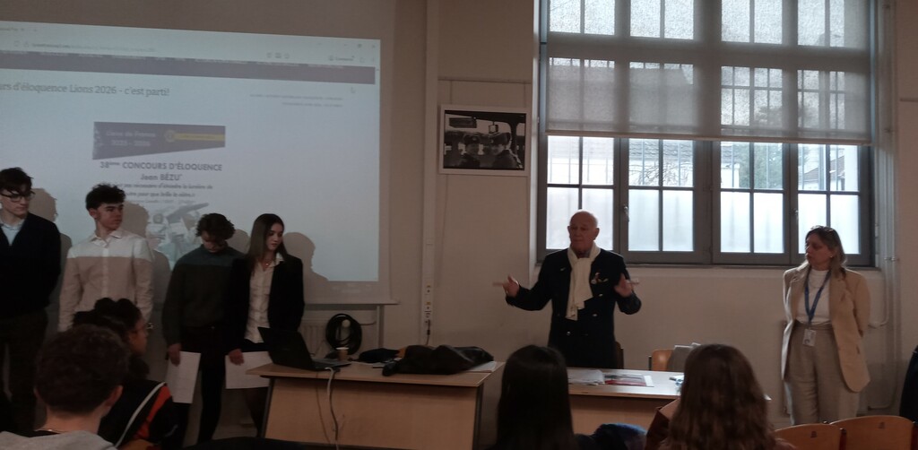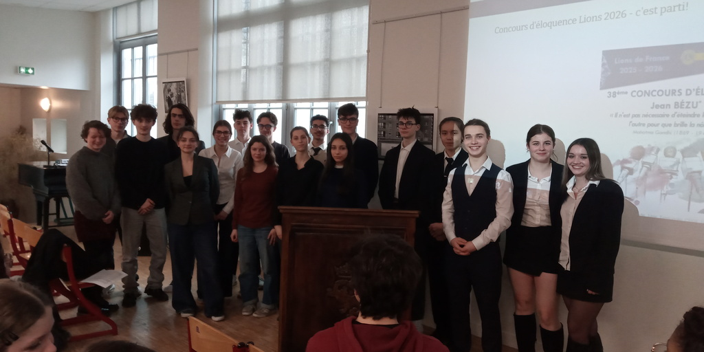 Mercredi 4 février 2026 après-midi ont donc eu lieu les éliminatoires F1 du trente-huitième concours d'éloquence Lions International dont le lycée a été vainqueur francilien 2020, 2021, 2022, 2024 (médaille d'argent 2023 et 2025) et dauphin national 2024. Dix-huit élèves de Seconde, Première et Terminale se sont donc succédé au pupitre salle Germaine Tillion pour exposer au public sept à dix minutes durant ce que les mots de Gandhi "Il n'est point nécessaire d'éteindre la lumière de l'autre pour faire briller la nôtre" signifient pour elles et eux.