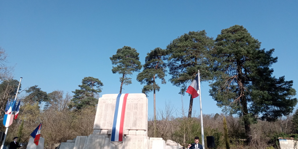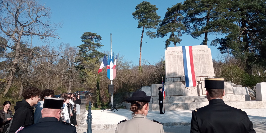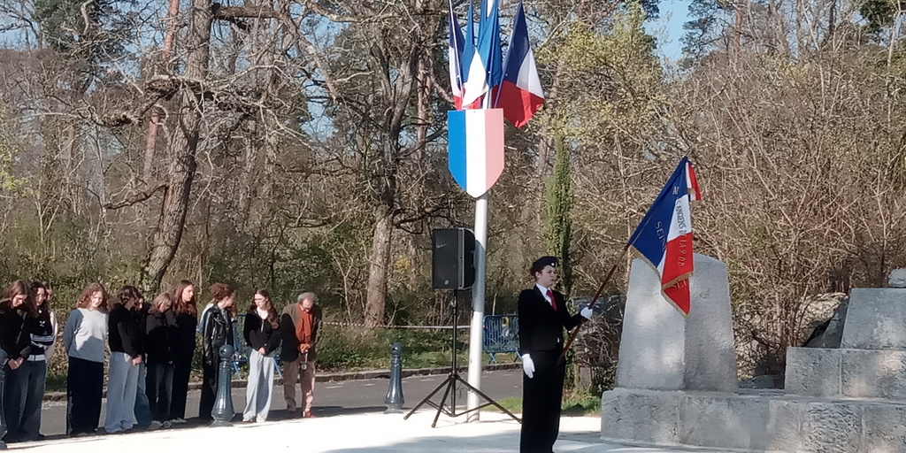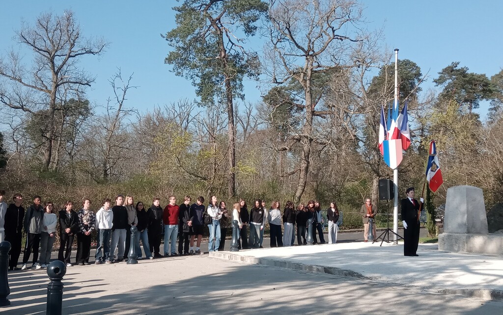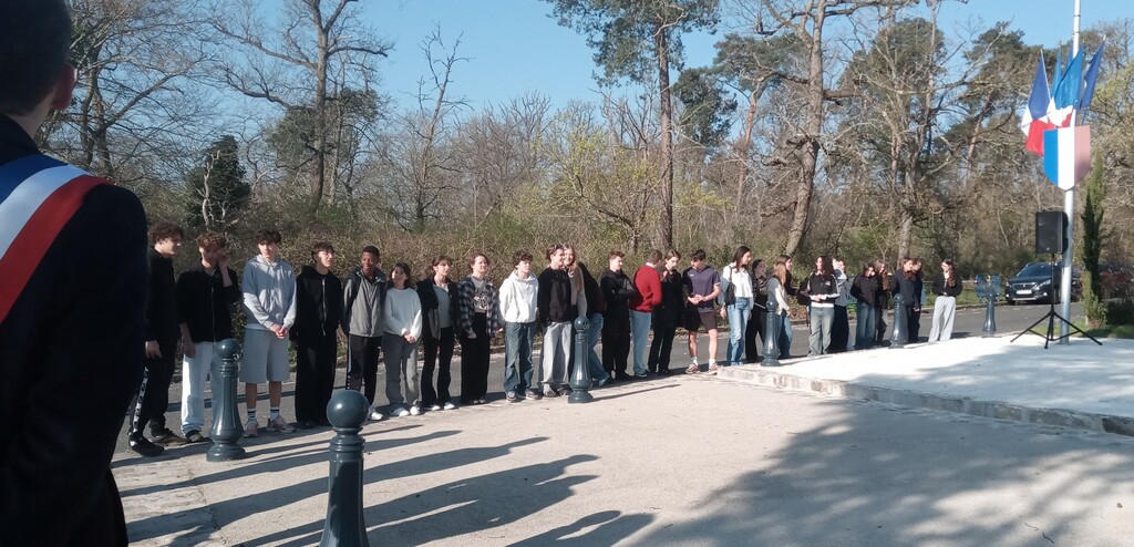La Seconde 4 CLE Défense Mémoire a assisté à la cérémonie de recueillement organisée ce 19 mars 2026 à 9h30 au monument aux morts de Fontainebleau en présence de M. le sous-préfet Yannis Bouzar, de Mme la vice-présidente du Conseil Départemental Béatrice Rucheton en charge de l'environnement et de M. Thibault Fline, adjoint au maire de Fontainebleau. Également présentes nos quatre élèves allemandes de Königswinter dans le cadre de leur immersion de deux semaines à F1.