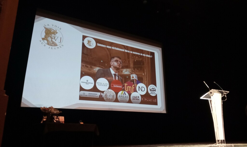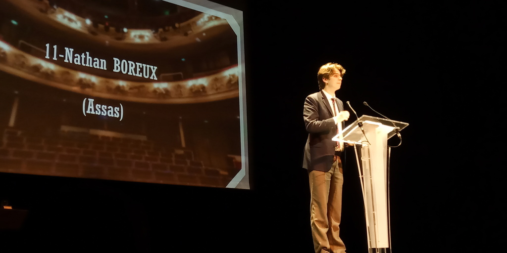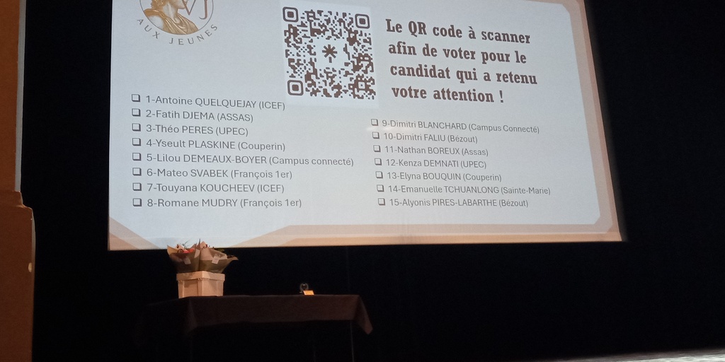 La quatrième édition du Concours d'éloquence Sud-77 s'est déroulée vendredi 20 mars 2026 au théâtre de Fontainebleau. Quatorze candidat-e-s de Terminale (lycées Bezout, Couperin, JASA, Sainte-Marie Nemours et F1) ou Licence (Assas, IEP Fontainebleau, Campus connecté) ont défendu leur réponse à la question "Sommes-nous vraiment libres, ou esclaves de nos désirs?"