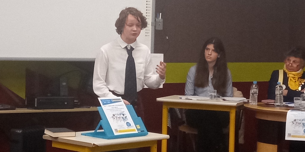 BRAVO à Marie CASTANET-LEONARD (T02, 2ème, prix €300), Gabrielle VINCENT-TAVERNIER (S04, 3ème, prix €200). Bravo également à Emilio Chauffert (P08), Anathilde François (S04), Luke Léonard (P07), Rose Mathieu (T03), Romane Mudry (T03), Mahdi Rekik (S01), Matéo Svabek (T07). Départager les candidats fut tout sauf un exercice facile, pour reprendre les mots du jury!